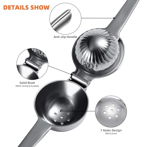 • DURABLE LEMON PRESS: Constructed from high-quality stainless steel, the heavy-duty bowls can withstand even the toughest fruits. The hinge area is solid, so you won’t have to worry about it breaking or coming apart.