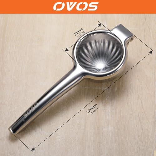 OVOS Citrus Juicer Lemon Press Squeezer Crafted from Unbreakable 18/8 Stainless Steel Manual Orange Lemon and Lime Fruit Squeezer for Optimal BPA Free and Dishwasher Safe (Silver)
