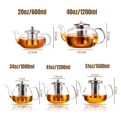【Stovetop safe】Crafted from lead-free borosilicate glass, our teapots are resistant to scratches and can endure temperatures between -68°F and 302°F. Suitable for direct use on stovetops and safe for microwaves and dishwashers.