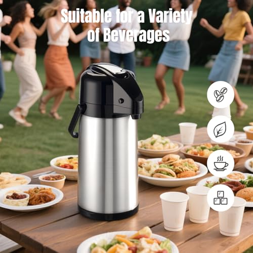 - Durable, Professional Construction: Designed to emulate the durability of restaurant-grade dispensers, this coffee airpot boasts a robust structure, including a reinforced lid and mechanism for long-lasting use. Its shorter height offers added stability, preventing tipping or wobbling, even in busy environments. An excellent choice for coffee enthusiasts and those who host large gatherings with hot beverages.