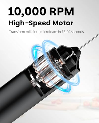 - Ultra-High Speed: Craft barista-quality foam in mere seconds! Featuring a robust 10,000-rpm motor, this milk frother wand converts regular milk into luscious, creamy microfoam within just 15-20 seconds, ensuring an exceptional café texture and mouthfeel every time.