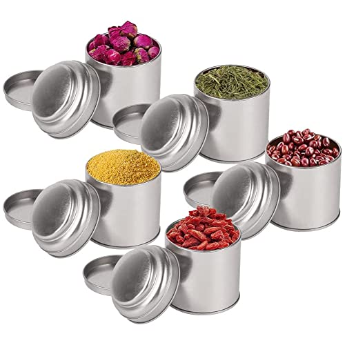 Pinafresa 6-Piece Mini Tea Canisters with Airtight Dual Lids, Silver, Compact, 75x90mm