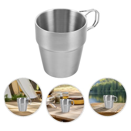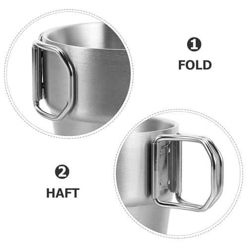 POPETPOP Stainless Steel Insulated Camping Mug with Foldable Handle – Double-Layer Design for Travel and Outdoor Adventures