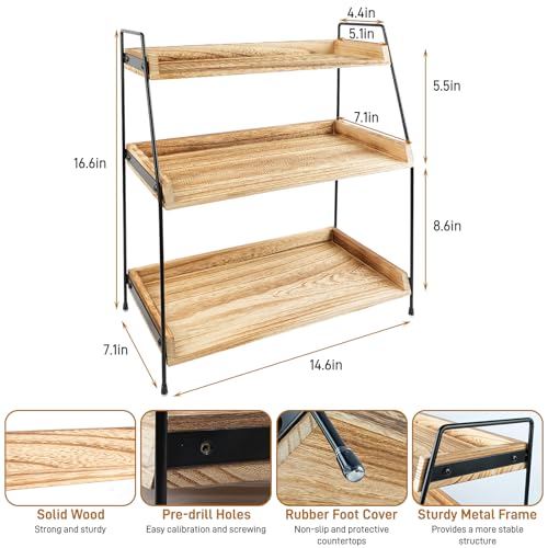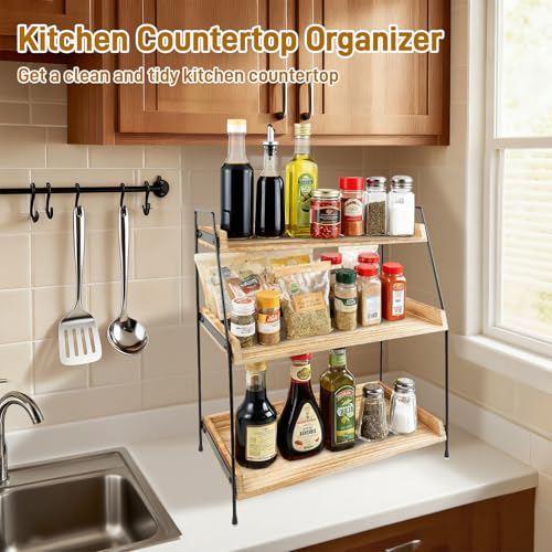 PopuLike 3 Tier Coffee Station Organizer, Wooden Coffee Storage and Spice Rack Kitchen Shelf for Coffee Tea Accessories