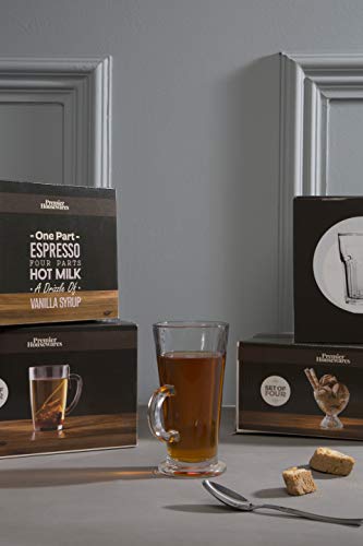 Premier Housewares Sturdy Clear Tall Glass Coffee Mugs Set Of 4 | Rounded Glass Handle Mugs | Versatile Coffee Cups | Lightweight Double-Walled Glass Mugs | Compact Glass Cups