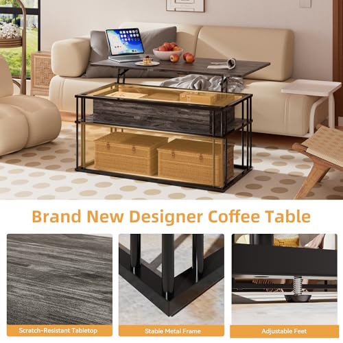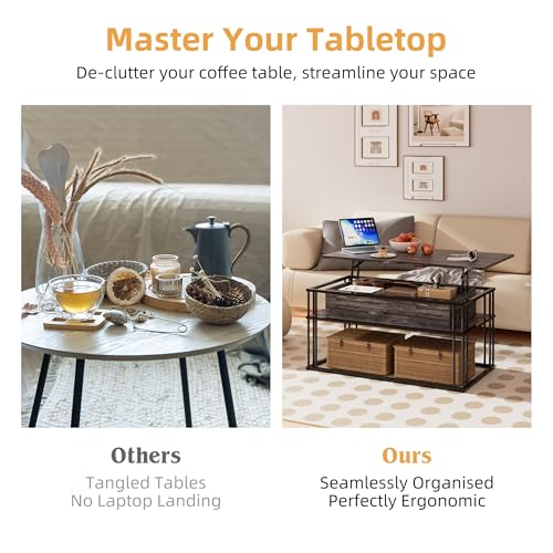 - Adjustable & Steady Lift-Top Design: Enhance your living environment with our cutting-edge elevate-top coffee table. Featuring a seamless and silent hydraulic lifting system, the tabletop smoothly glides up and down, ensuring gentle and stable movement. When fully raised, it can hold up to 20KG, providing a robust surface for various activities without wobbling or shaking.