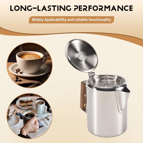 Discover the Qeunrtiy Coffee Percolator, perfect for camping and home use. This stainless steel coffee maker brews up to 9 cups.