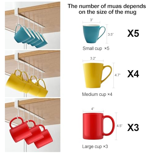 - Space-Saving Mug Hooks: Our under-cupboard mug hangers can be used in kitchens, cabinets, bookshelves, and more to save space and maximise utility. The cupboard cup hangers can also hold coffee cups, tea cups, kitchen utensils, ties, bags, and other small items to keep your home tidy.