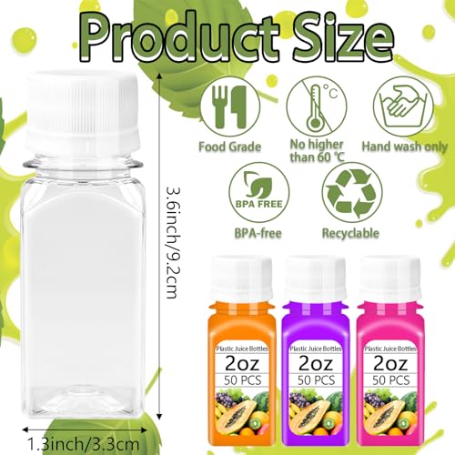 - VERSATILE USE: Our 2 oz reusable juice containers with lids are perfect for storing juices, iced coffee, fresh fruit shakes, milk, smoothies, syrups, and other beverages, suitable for travel, picnics, and various activities.