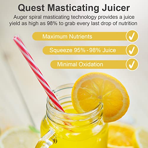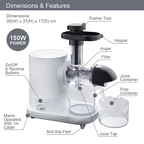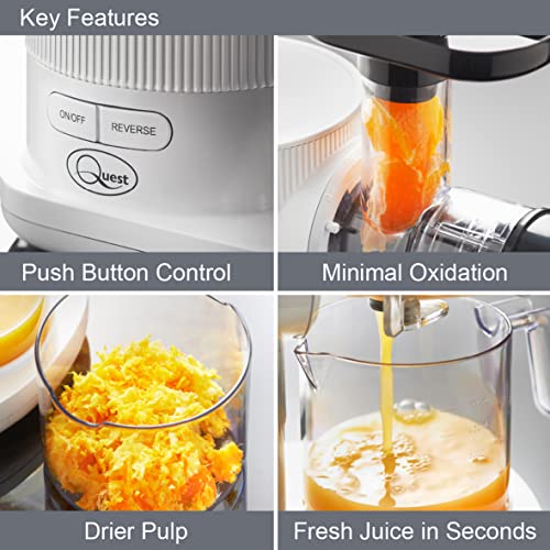 Quest 150W Slow Juicer / Cold Press Type / Masticating Juicer / Silent Motor Under 60 dB / Enhanced Nutritional Value & Juice Yield / Includes Accessories (White)