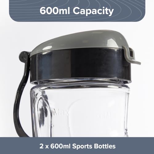 Quest Personal Blender & Smoothie Maker | 350 Watt | Includes 2x 600ml Portable Bottles | One Touch Button | Slimline, Portable and Compact | Stainless Steel Blades (Black & Grey)