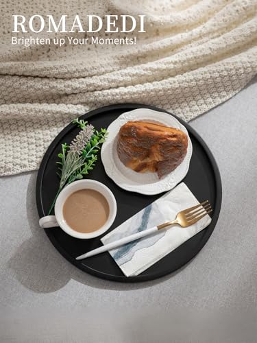 Romadedi Decorative Black Round Tray: Metal Candle Holder for Table Centrepiece, Living Room Decor, Perfume Organiser, 30cm