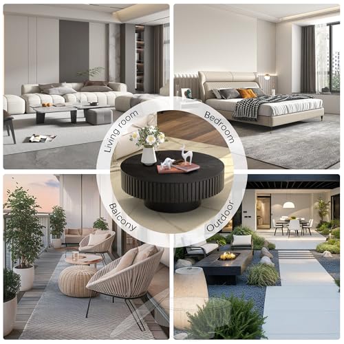 - Contemporary Coffee Table Design: Featuring a rustic-modern design, this wooden coffee table with intricately crafted edge grooves enhances the elegant appearance of your living area. With an 80CM diameter, this round coffee table integrates seamlessly into both compact and expansive living spaces. Its streamlined design ensures easy placement without dominating the area.