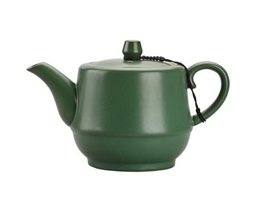 NCQIXIAO Rustic Ceramic Teapot with Stainless Steel Infuser – 16 Ounce Porcelain for Blooming & Loose Leaf Tea (Green)