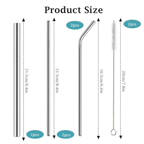 - 【Safe, Smooth & Silicone-Free Design】All straws are 8.5 inches long with polished rounded edges. Composed of food-grade stainless steel, they eliminate the need for silicone tips—safe for direct contact with lips and teeth, even with hot or icy beverages.