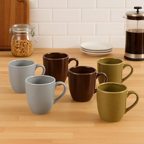 - Attractive Colour Options: Available in three appealing colours—grey/blue, green, and brown—these mugs easily complement a variety of kitchen décor styles, from modern to rustic themes. Please note, as these are reactive glaze, the colour and design may vary from the advertised items.