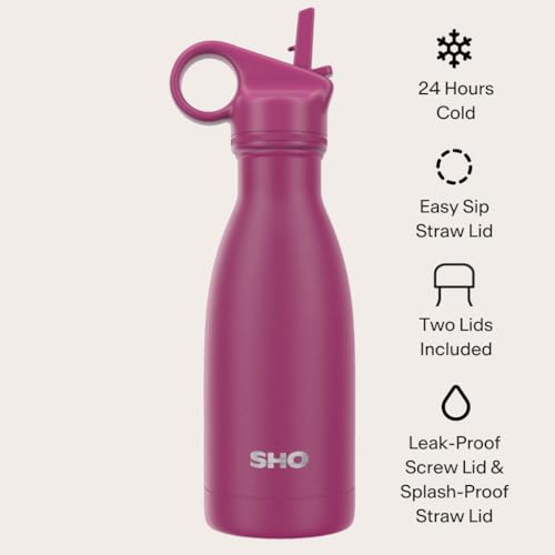 SHO Stainless Steel Water Bottle with Straw and Screw Cap – Leakproof, BPA-Free, Vacuum Insulated Double-Walled Metal Flask, 500ml – Original 2.0-12 Hours Hot 24 Hours Cold (260ml, Very Berry)