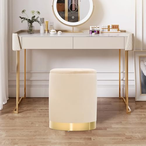 SJGUOJI Round Ottoman with Storage Set of 2, Upholstered Velvet Storage Ottomans, Vanity Stool, Versatile Ottomans, Coffee Table Footrest Ottoman for Living Room Bedroom, Khaki