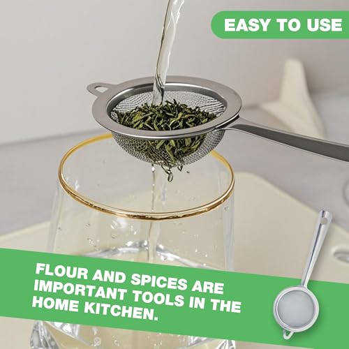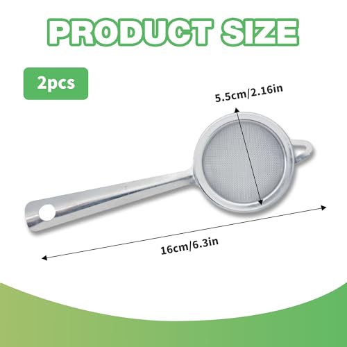 Small Sieve Fine Mesh, 2 Pcs Tea Strainers for Loose Tea, Mini Small Tea Sieve Fine Mesh, Stainless Steel Siveve Sift with Handle Strainers for Loose Tea Cocktail Spices and Baking