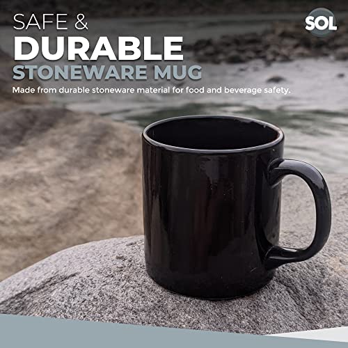 SOL 12pk Stoneware Black Mugs 11oz Ceramic Cups for Tea and Coffee Durable Drinkware Set for Home Office Café Restaurant Stackable Design Microwave and Dishwasher Safe Suitable for Hot Beverages