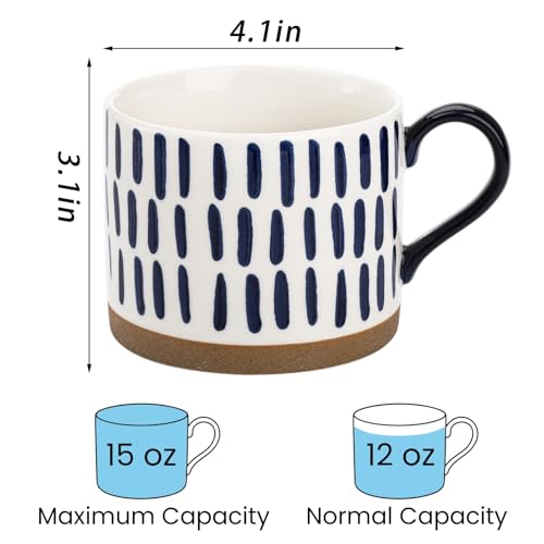 - Generous Capacity: The set of 4 coffee cups offers a maximum capacity of 15 oz and a regular capacity of 12 oz, ensuring they meet your demands for both home and office use. Perfect for a variety of hot and cold beverages, such as coffee, hot chocolate, tea, water, and juices.