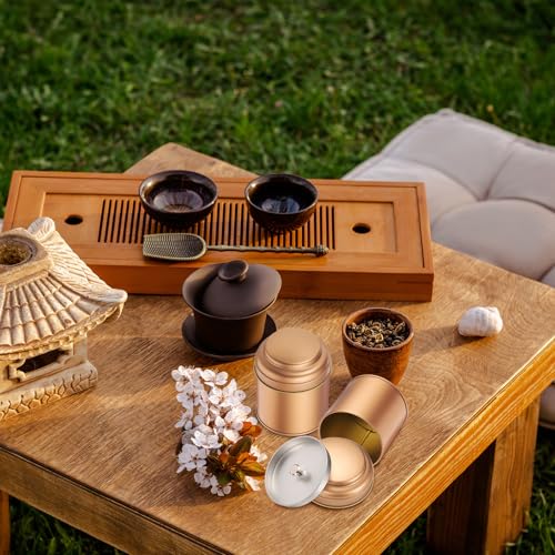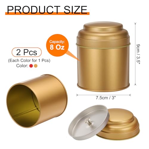 sourcing map 2 Pcs Tea Tins Canister with Airtight Double Lids, 8 Fluid oz Compact Round Tin Canister for Loose Tea Coffee Candy Spices, Bronze Gold, Red
