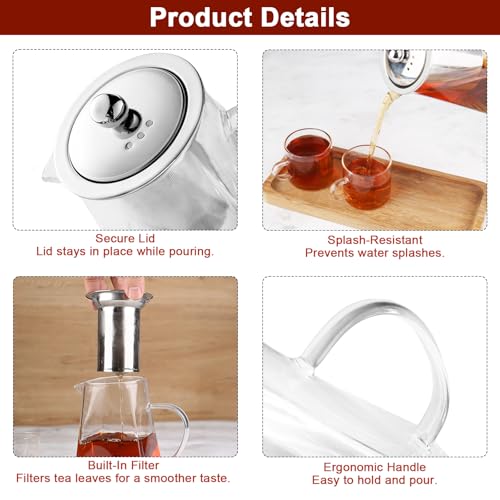 - HEAT & COLD RESISTANT: Constructed from robust borosilicate glass, this teapot effortlessly endures both heat and cold. The Heat-Resistant Borosilicate Glass Teapot with Strainer adapts seamlessly to oven, dishwasher, freezer, gas, and electric stove use, providing safe versatility. Enjoy a warm or cool tea moment without concern for thermal stress.