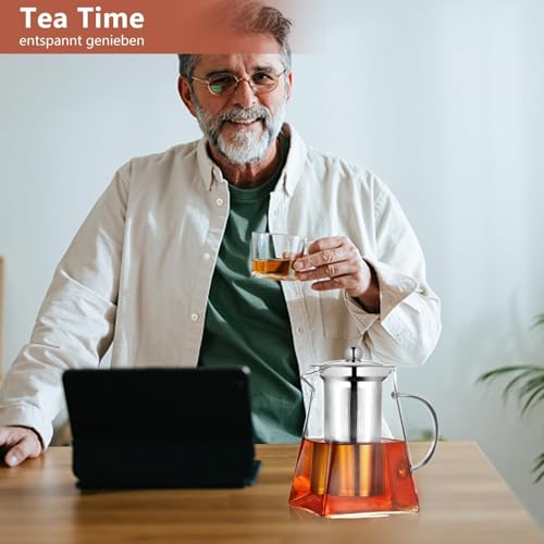 - 【Heat and cold resilient teapot】This glass teapot with infuser can endure instant temperature changes from 20°C to 130°C. Transparent teapots with strainers remain intact even when boiling water is poured into a frozen teapot instantly. The heat-resistant borosilicate glass teapot is designed to resist breakage.