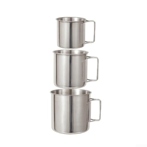 Durable Stainless Steel Camping Mug, 220-500ml Portable Travel Cup with Folding Handle, 304 Steel Smooth Edge for Hiking Adventures
