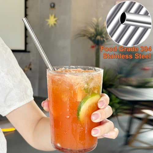 Reusable Stainless Steel Straws – Metal Drinking Straws for Juice, Iced Coffee, Cold Beverages, Water, Highball Glasses, 20oz Tumblers, Mugs, Set of 8 with Brush, Silver