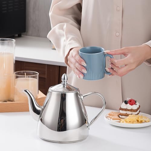 - ☕ HIGH-QUALITY CONSTRUCTION: The teapot is crafted from robust, premium stainless steel with a polished finish to enhance heat retention and add a touch of elegance to your kitchen.