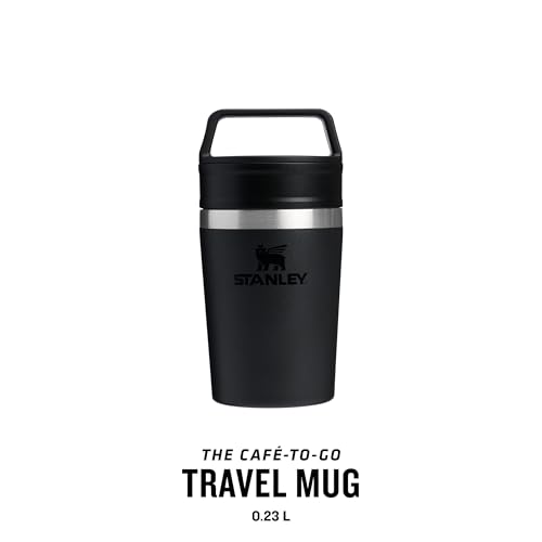 STANLEY 1913 Cafe to-Go Travel Mug 0.23L – Retains Heat for 3 Hours – Keeps Cold for 4 Hours – Stainless Steel Thermal Mug – Dishwasher Safe – Easy-Carry Handle – Insulated Coffee Cup – Black