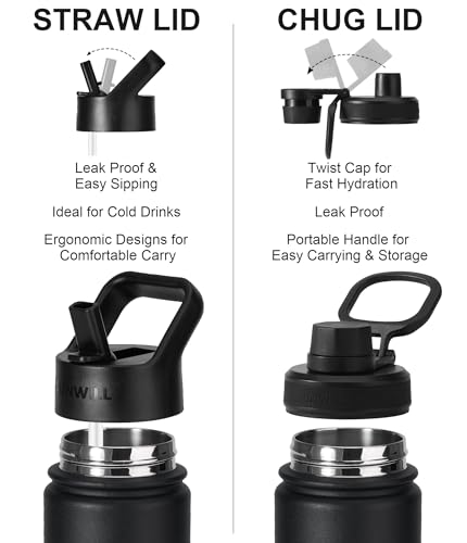• Two Lids, Leak Proof and BPA Free: Comes with a straw lid and a chug lid, featuring an ergonomically designed handle for effortless carrying, ideal for healthy hydration during gym workouts, hiking, camping, and climbing.