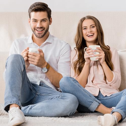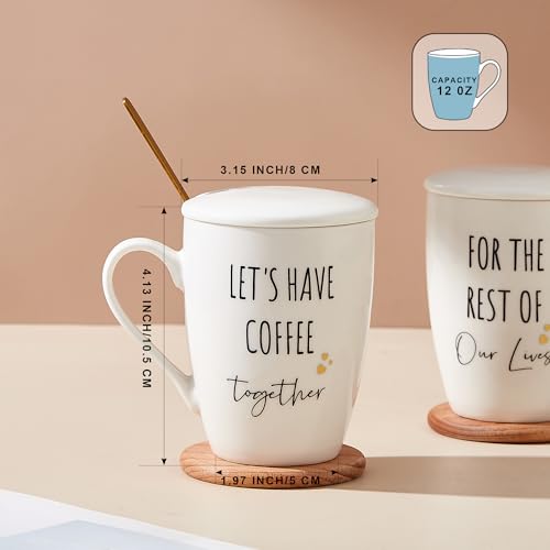 Swuut 12oz Ceramic Couple’s Coffee Mug Set of 2 – Wedding, Engagement – Bridal Shower, Housewarming (White)