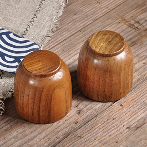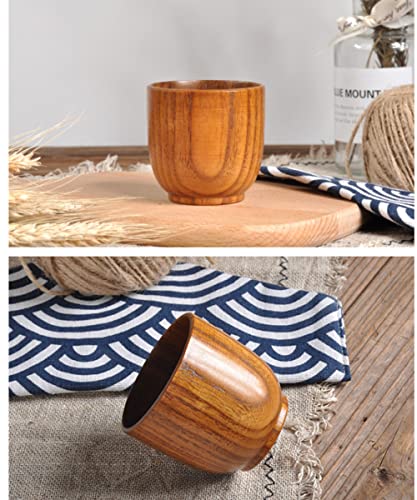 TANFEI Set of 6 Japanese Style Wooden Cups, Jujube Wood Tea and Coffee Mugs, Durable Drinking Cups for Home and Restaurant Use