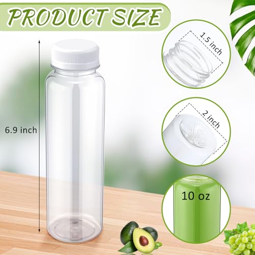Thenshop 50 Packs 10 oz Clear Plastic Juice Bottles with Caps BPA Free Juicing Containers Bulk Reusable Drinks Holder with Leak Resistant Lids for Tea, Water, Milk, and Smoothies