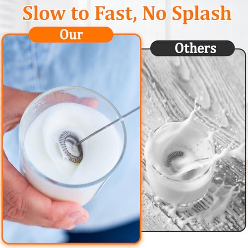 - 4【Dual-Purpose 304 Stainless Steel Whisks】: Includes two premium food-grade 304 stainless steel whisks. One whisk is perfect as a frother for coffee, milk, lattes, and hot chocolate. The other is an ideal egg whisk for baking, making this handheld coffee frother your ultimate kitchen companion.