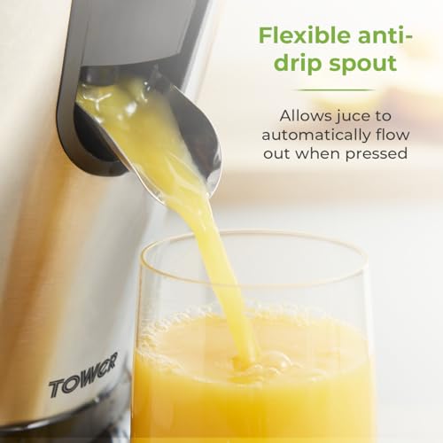 Tower T12062 Freeflow Citrus Juicer with Flexible Anti-Drip Spout, 85W, Stainless Steel