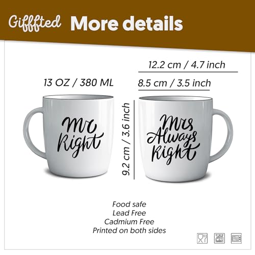 Triple Gifffted Mr Right Mrs Always Right Coffee Mugs Gift Set for Couples, Wedding Anniversary, Engagement, Christmas, His & Hers, Bride and Groom, Parents, Newlyweds Bridal Shower, Ceramic 380ml