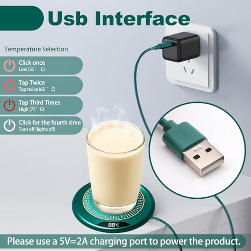 - Perfect Temperature Control: This USB coffee mug warmer offers three adjustable settings (55°C / 65°C / 75°C), allowing you to select your ideal drink temperature. It helps keep your coffee or tea warm for an extended period rather than cooling down in minutes. Note: actual surface temperature varies with room conditions and cup material/thickness.