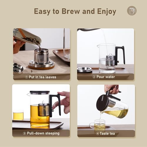 - Magnetic Stainless Steel Infuser: Effortlessly control the magnetic infuser with the handle switch. Press to submerge the infuser for steeping, and lift to halt infusion once the tea reaches your desired strength. This feature prevents over-steeping, ensuring a perfect brew every time.