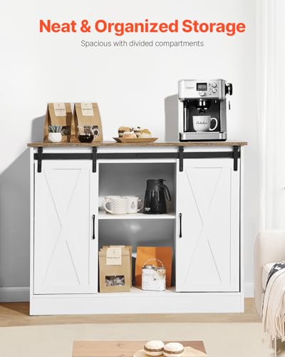 VEVOR Coffee Bar Cabinet, 41.8 x 15.8 x 32.1 in Rustic Coffee Bar Cabinet with 3-Tier Storage, Table with Barn Doors, Farmhouse Sideboard Buffet for Living Room, Entryway