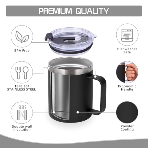- [Double Wall Insulation Technology] Volhoply’s mugs feature double-layer vacuum insulation technology, keeping your drinks warm for over 3 hours and cold for more than 9 hours, whether indoors or outdoors. Enjoy your favourite beverages for a long time, keeping every sip fresh until the last drop!