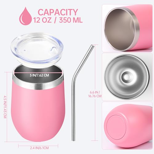 Volhoply 12oz Insulated Stainless Steel Wine Tumbler with Lid & Straw – 350ml Travel Coffee Mug for Chilled Drinks – Ideal Gift Set in Pink