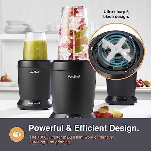 - POWERFUL 1000W MOTOR: The VonShef blender smoothie maker’s powerful motor makes blending a diverse range of ingredients a breeze, producing scrumptious concoctions at remarkable speed.