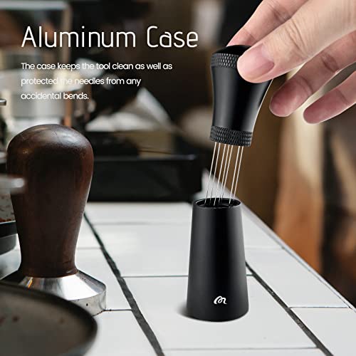 - 【Premium Quality】Crafted with an aluminium alloy casing that keeps the coffee needle distributor clean while safeguarding the needles from accidental bends. Both the handle and the stand are constructed from aluminium alloy, featuring a refined matte finish that looks elegant and sophisticated.