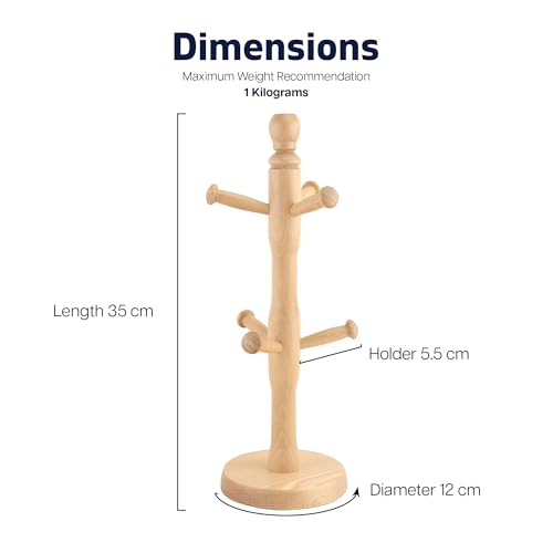 - SPACE-SAVING DESIGN: With its vertical shape, this wooden mug tree organiser is ideal for conserving space in your kitchen; it keeps your mugs organised without occupying much room on your counter.