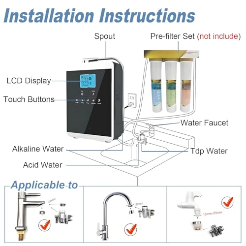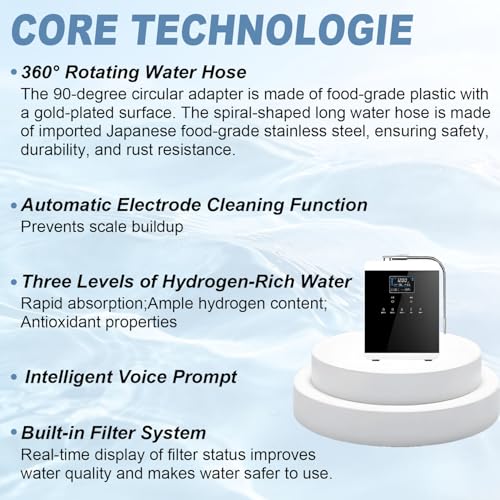 - DIVERSE WATER TYPES: The intelligent home water ioniser generates various types of water to satisfy different household requirements, including alkaline water for everyday drinking, purified water for cleaning fruits and vegetables, and acidic water for skincare.