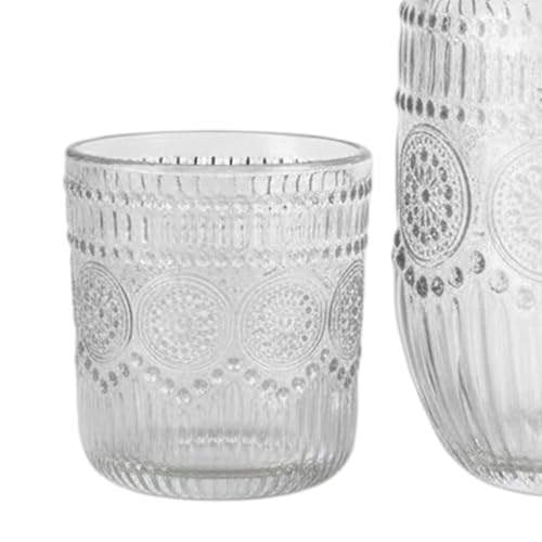 XUQEAYWD Bedside Water Carafe and Glass Set 18×9.3cm Glass Snowflake Design Vintage Bedside Water Carafe, Vintage Water Pitchers, Bedside Night Carafes, Water Pitcher for Bedroom Table
