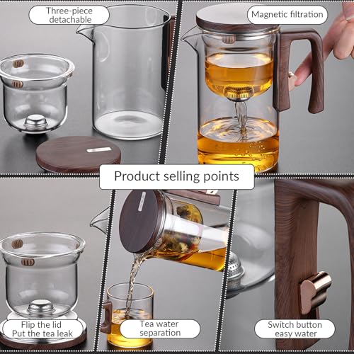 Xweptuy Magnetic Teapot with Handle & Spout 520ml Glass Teapot with Infuser for Loose Tea Heat Resistant Detachable Washable with Lid for Home, Office, Teahouse